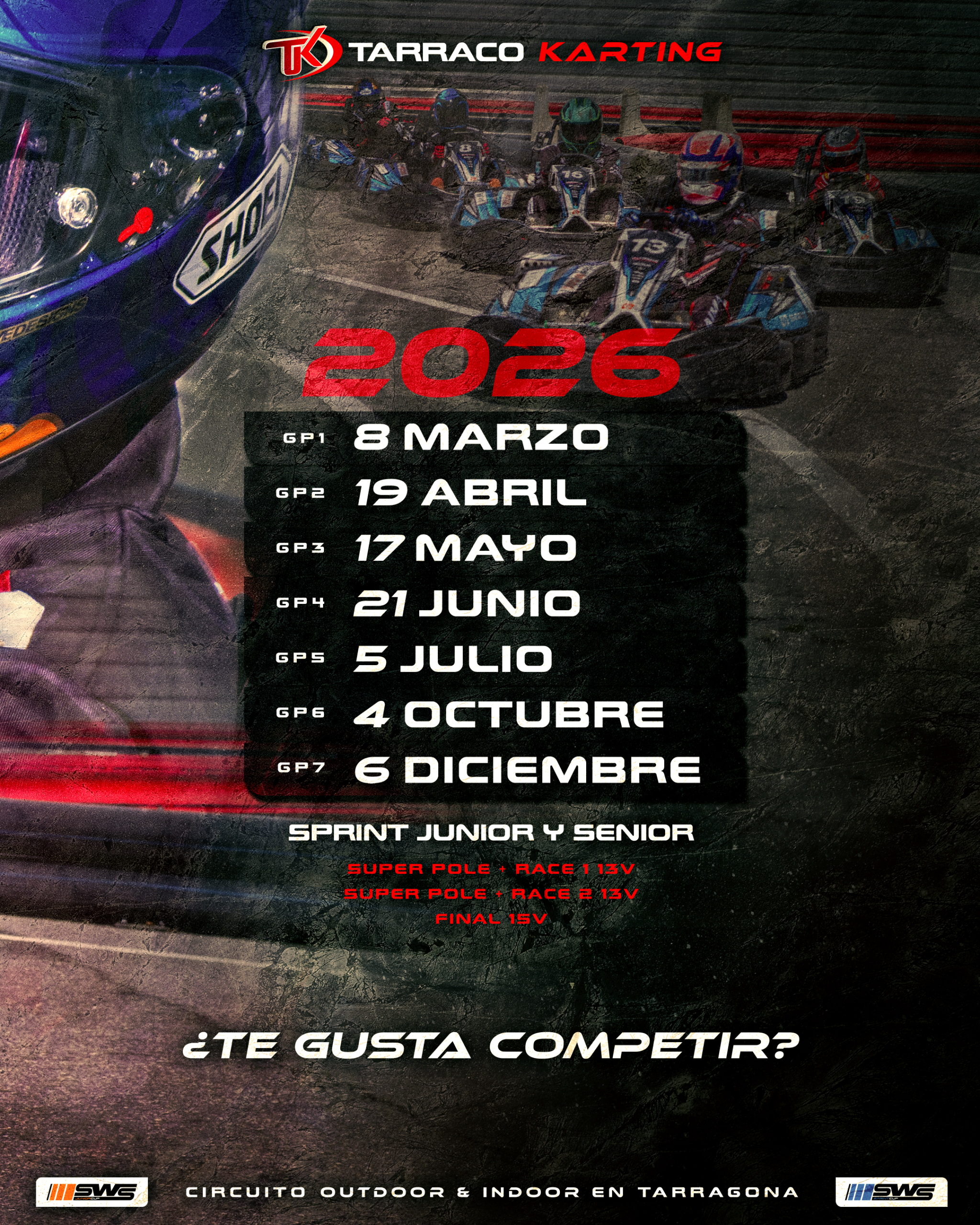 ¡En Tarraco Karting, la pasión por las carreras es nuestra fuerza motriz! Organizamos un emocionante campeonato individual a lo largo del año, lleno de desafíos y diversión. ¡Y lo mejor de todo es que cualquiera puede unirse! No importa tu nivel de experiencia, solo necesitas las ganas de divertirte y aprender.